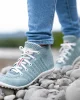 Da kommt der neue, bequeme „seablue“ in frischem Meeresblau genau richtig: Die ultraflexible Sohle pariert nicht nur jeden Befehl des Fußes, sondern unterstützt auch den natürlichen, sicheren Gang bei jedem Schritt – als wäre man barfuß.